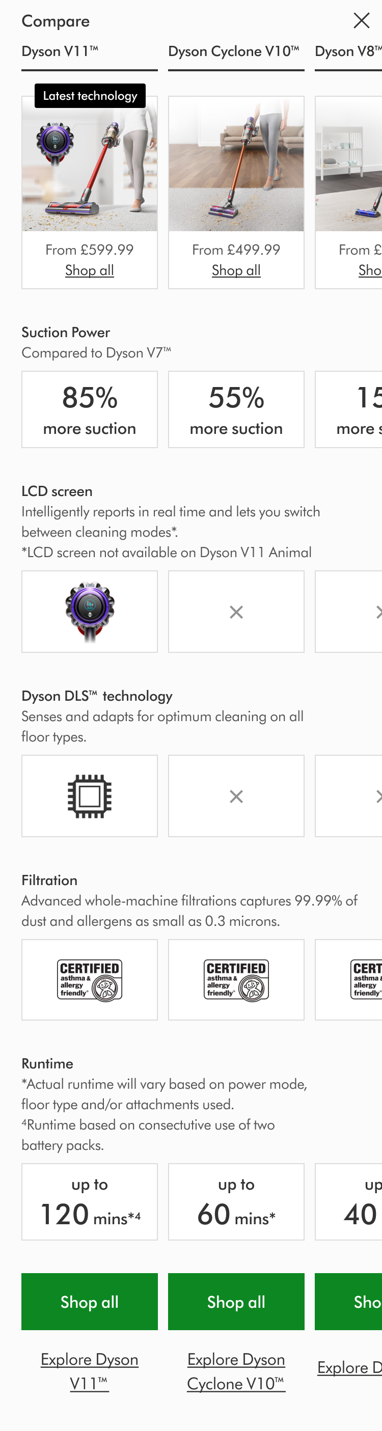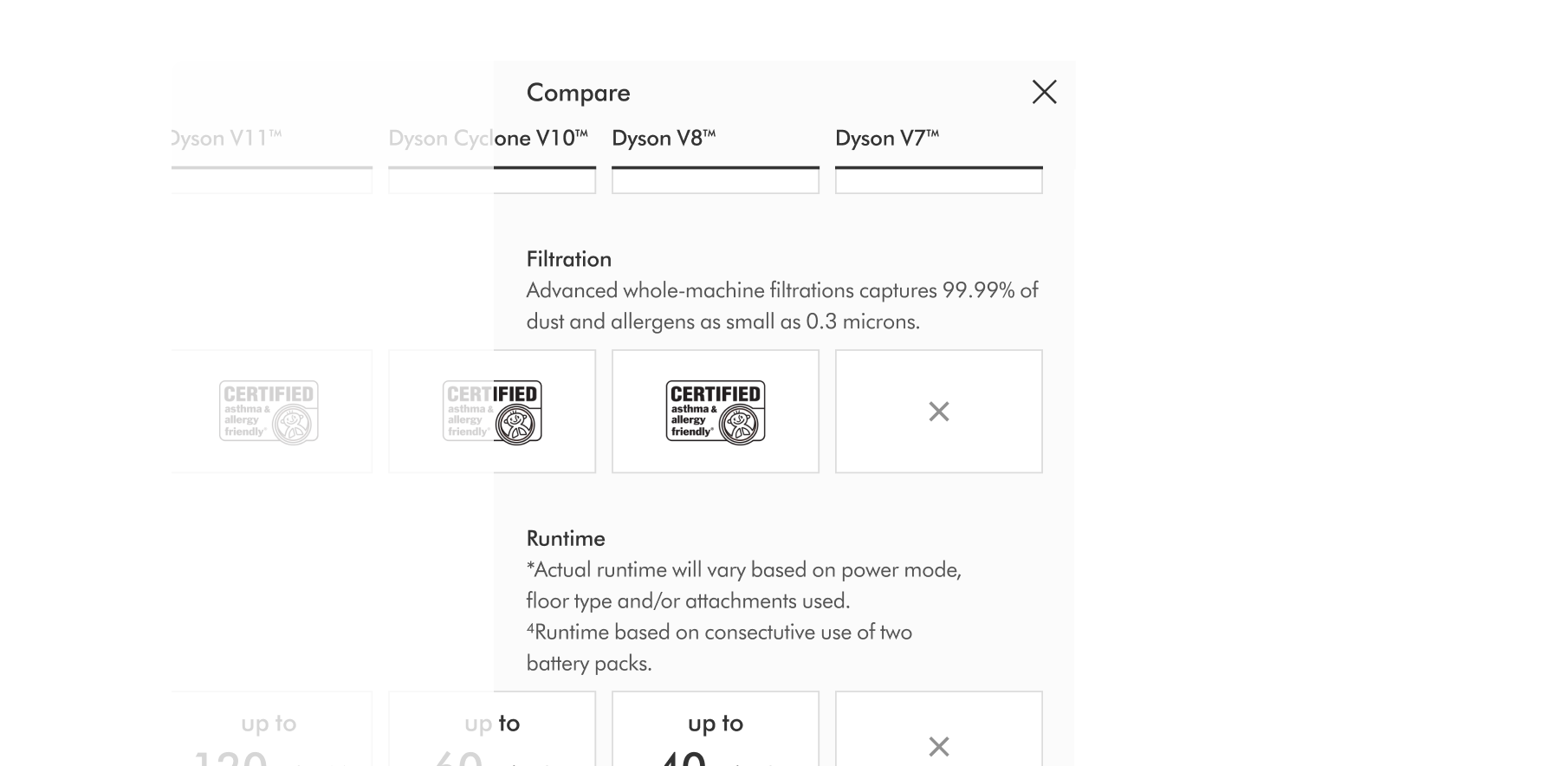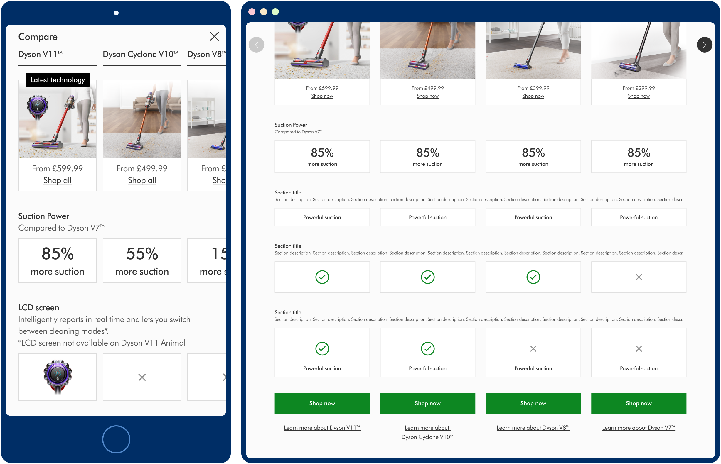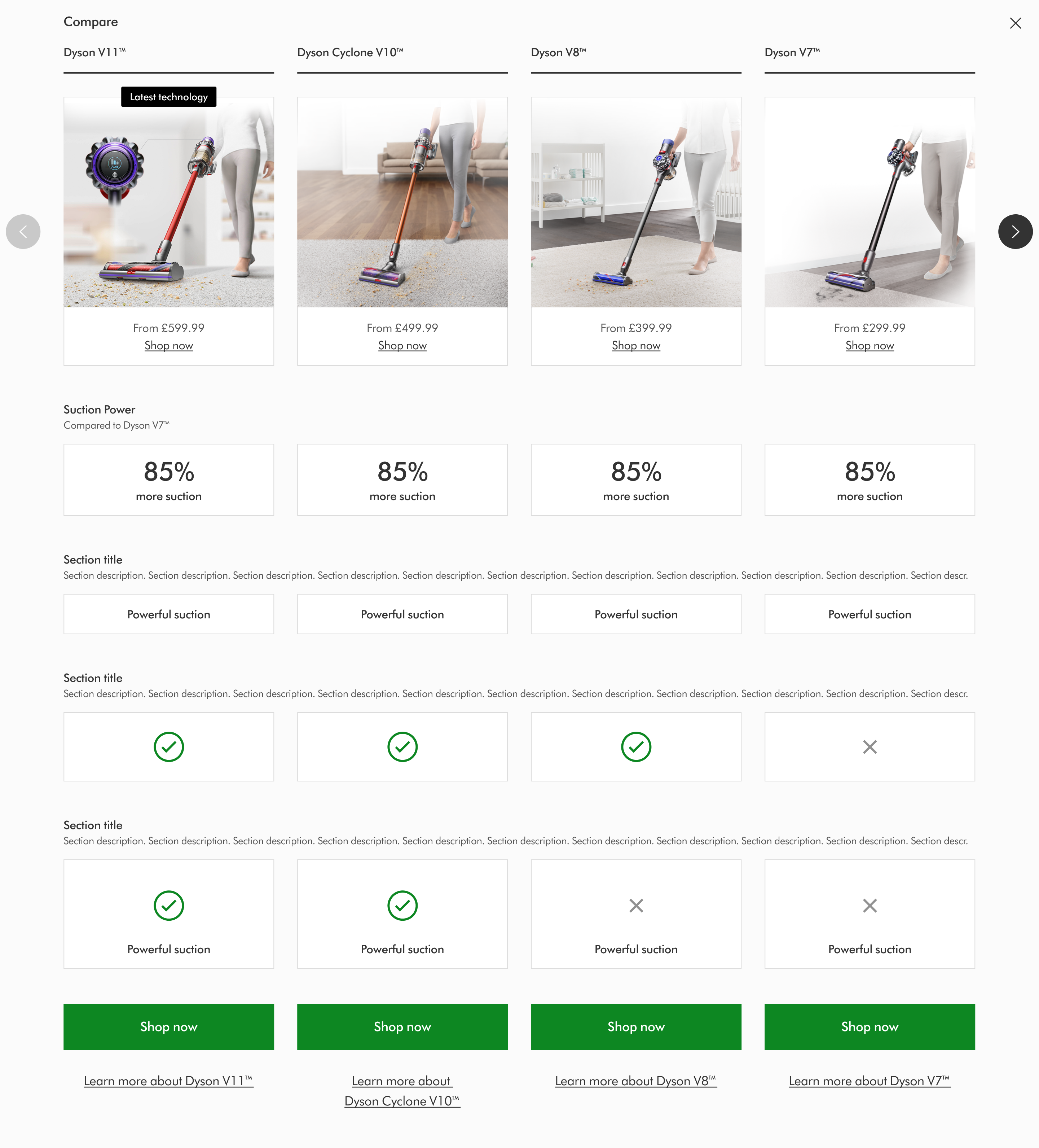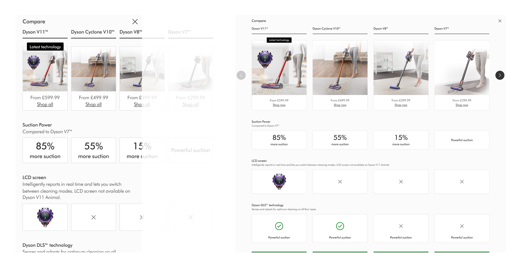 Both the header and section titles were sticky, meaning visual users didn’t lose context of what product or section they were comparing against.