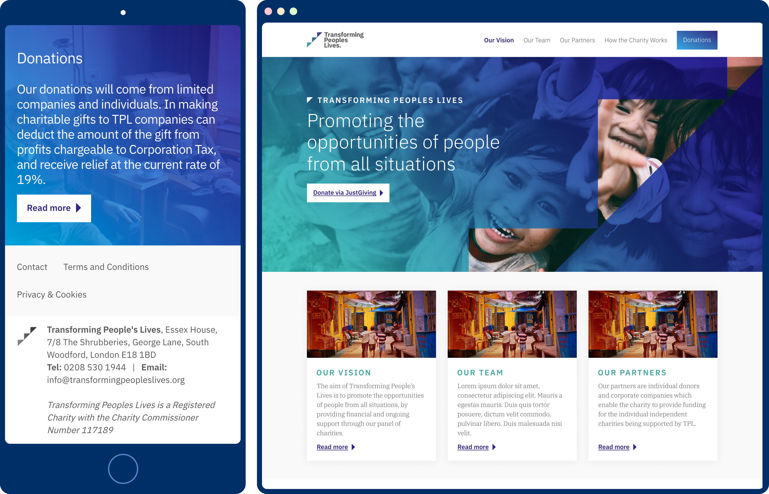 Transforming People’s Lives needed a new website to capture more donations and present their cause in a more modern way. A peer of mine had just completed a rebrand and asked me to pitch for their website design.